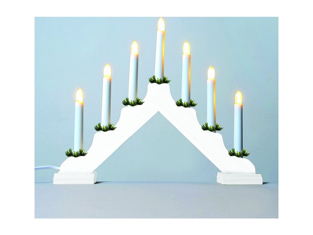 Adventní svícen dřevěný bílý s čirou LED Filament "žárovkou" 7x34V/0,2W