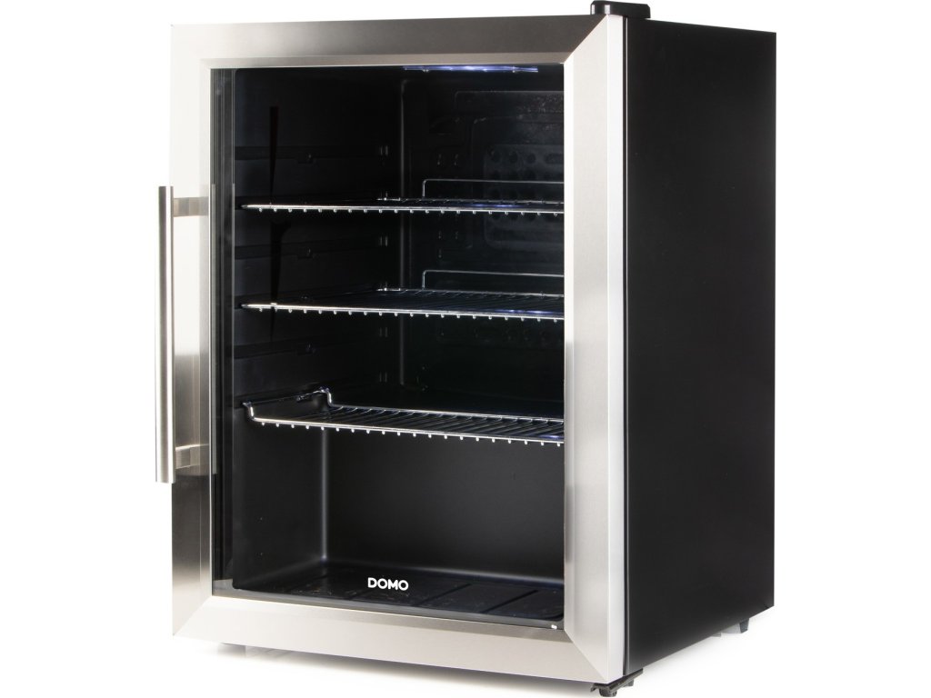 Elegantní a s dostačujícím objemem 60 litrů, to je domácí chladnička nápojů DOMO DO91609BK. Vnitřní LED osvětlení a skleněné dveře s nerezovým rámem i madlem dodají každé místnosti na eleganci. Energetická třída D znamená, že tato chladnička je ekonomická ve spotřebě energie. Nastavení vnitřní teploty mezi 2 °C až 15 °C rozšiřuje možnosti využití pro různé druhy nápojů