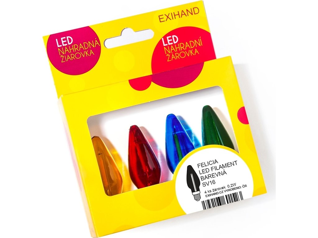 1 blistr = 4 žárovky, mix všech barev (modrá, červená, zelená, žlutá)