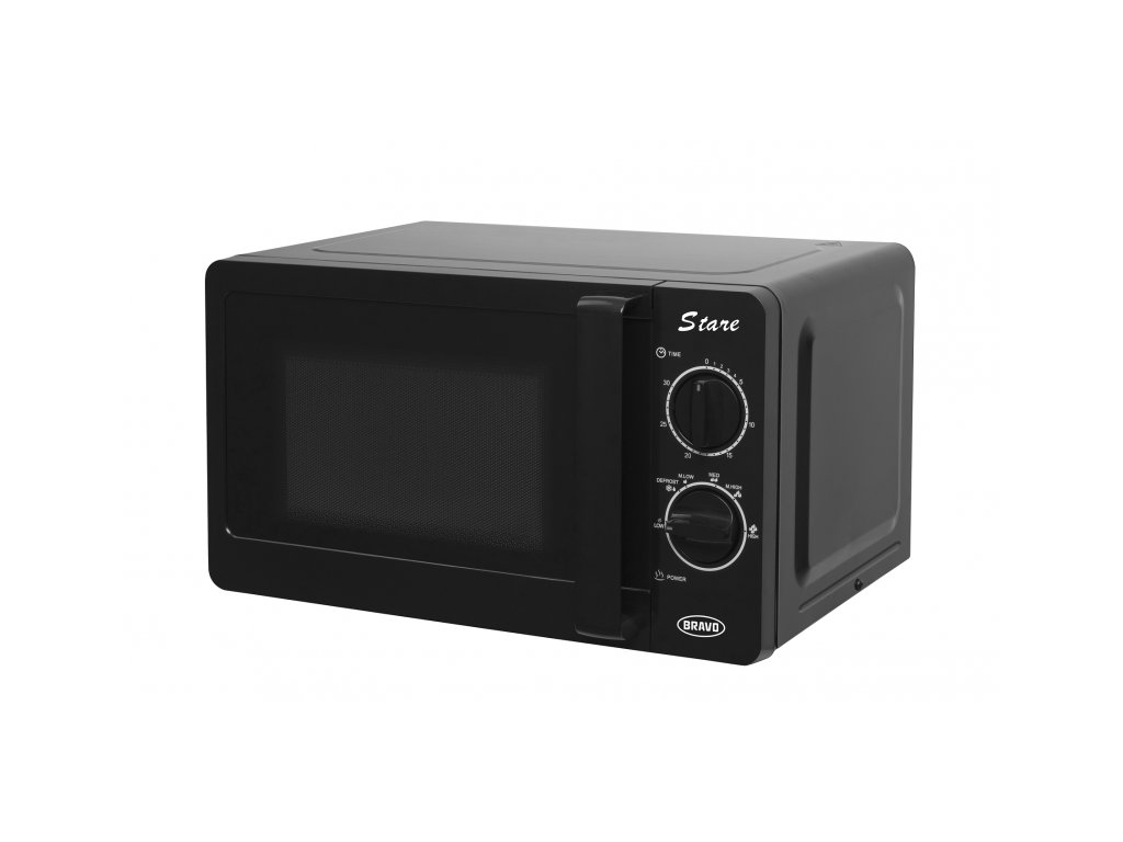 Černá mikrovlnná trouba Bravo Stare B-4962 o objemu 20l. Nabízí klasický mikrovlnný ohřev a rozmrazování. Nechybí ani praktický časovač 30 minut.