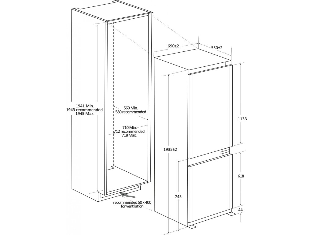 Vestavná kombinovaná chladnička s mrazákem Fresco – šířka 69 cm