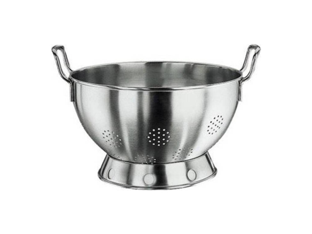 Nerezový cedník kulatý s podstavcem a 2 držadly.