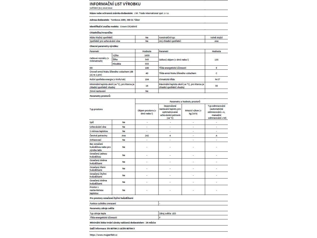 • spotřeba den/rok 0,285 kWh / 104 kWh