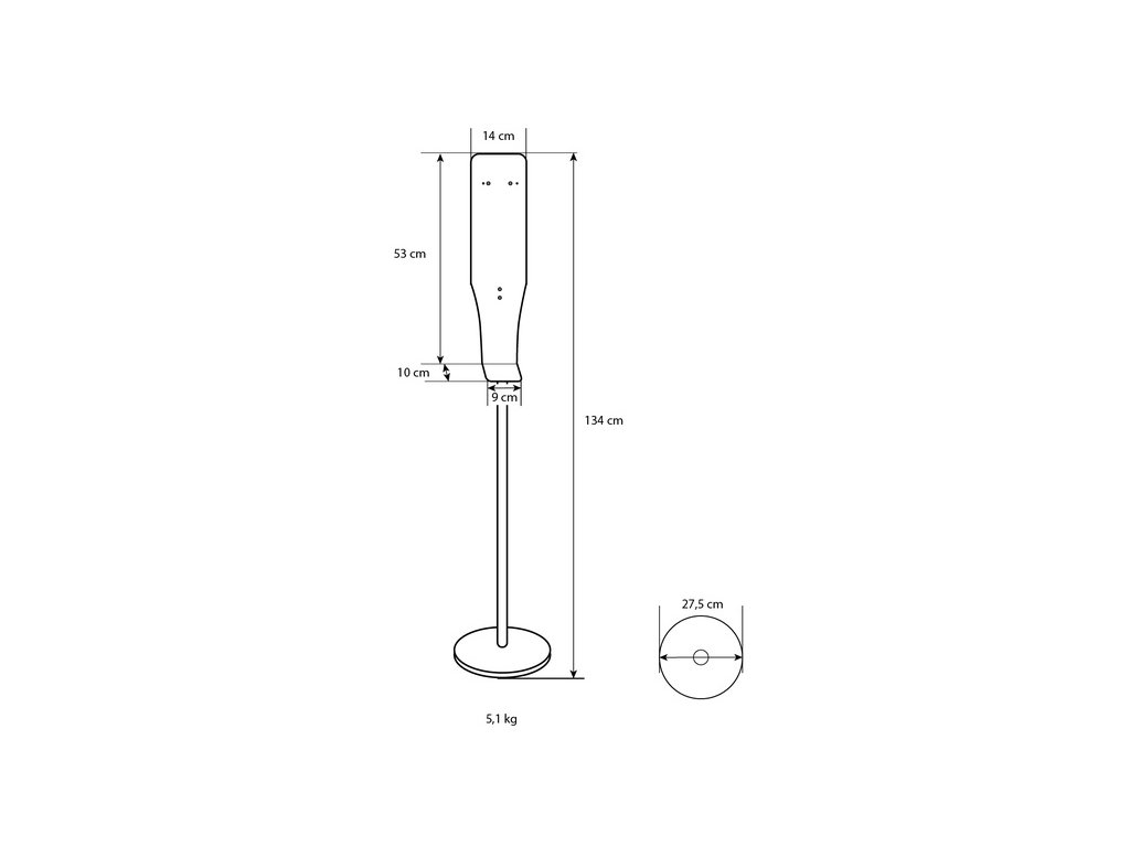 Stojan je určený pro dávkovače gelové a tekuté dezinfekce Donner. Po vyvrtání nových otvorů však může posloužit i jako univerzální stojan pro jakýkoliv dávkovač dezinfekce.