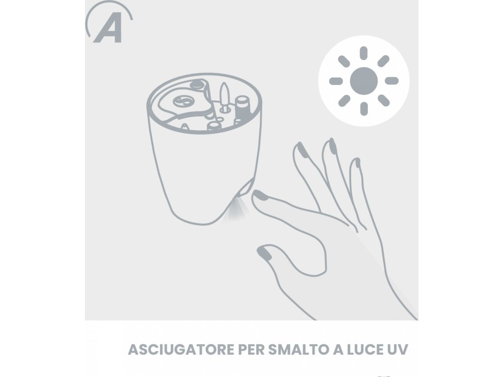 - 5 vyměnitelných nástavců: odstranění nehtové kůžičky, leštící nástavec, tvarovací nástavec, pilovací nástavec a vyhlazovací nástavec
