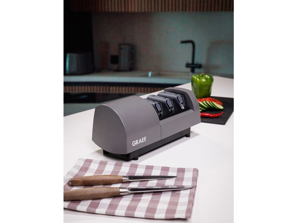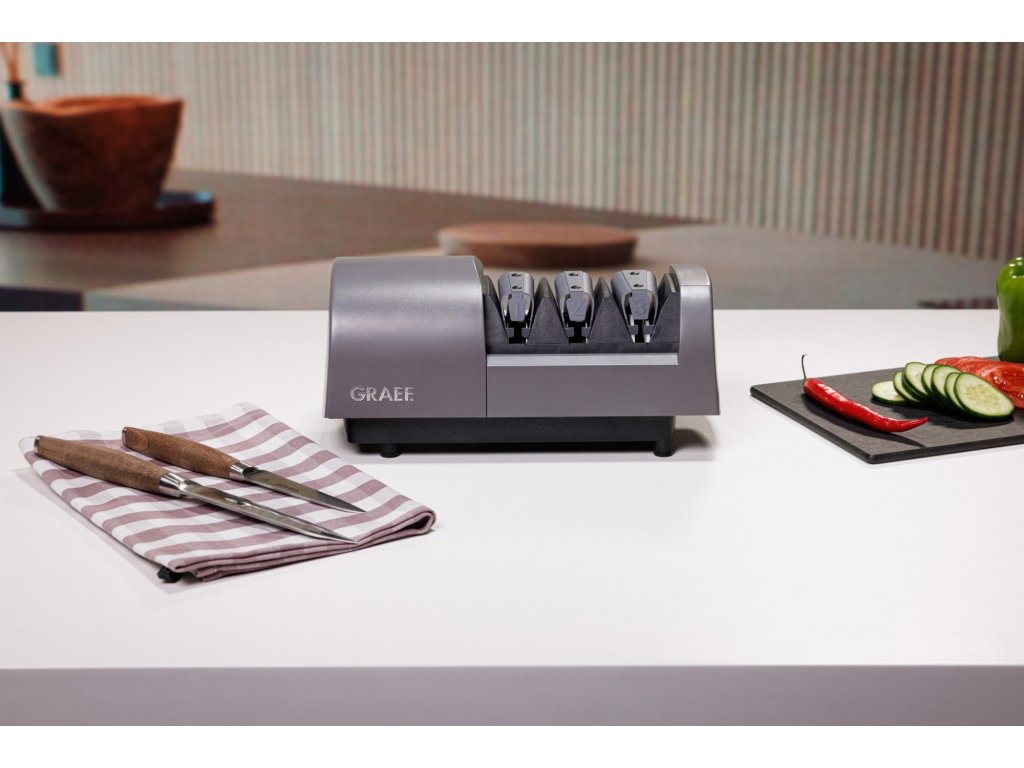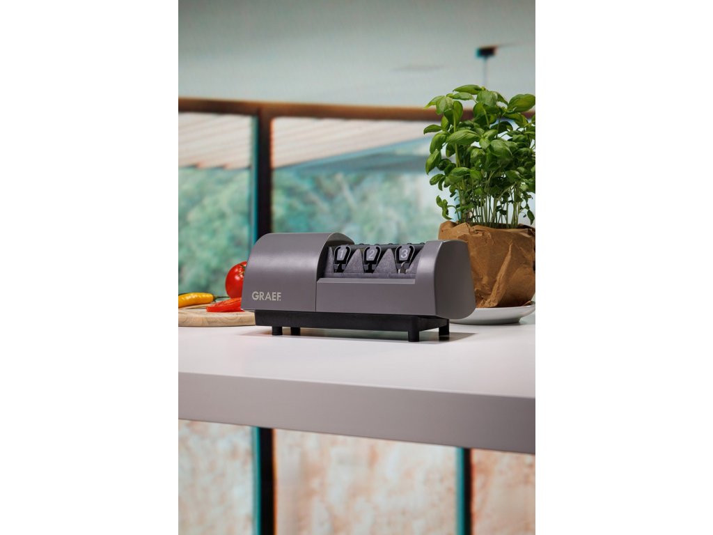 Další funkce:• Vhodné pro širokou škálu nožů, jako jsou kuchyňské, lovecké, outdoorové nebo jiné, či profesionální nože• Pomalu se pohybující brusné kotouče s diamantovým povlakem a dlouhou životností. patentovaný proces leštění zabraňují žíhání nože.• Trizor® - nesrovnatelně stabilní, obloukovitá struktura ostří se třemi fazetami• EDGESELECT® - nastavitelné ostření nožů pro různé úkoly• Maximální bezpečnost při broušení bez rizika poranění• Nevyžaduje čas ani námahu - rychlé ostření bez námahy• Vroubkované nože lze znovu nabrousit díky 3. fazetě• Příkon 75W