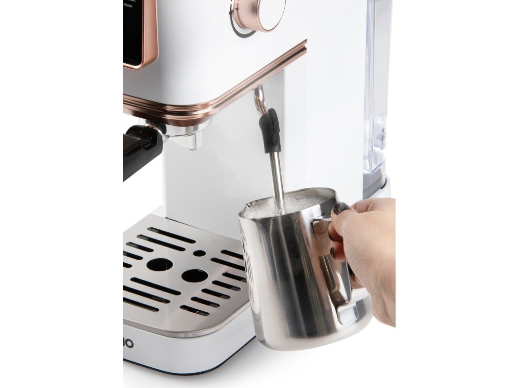 Systém ohřevu Thermoblock a PID regulace teploty zaručují rychlý ohřev a přesnost. Intuitivní barevný dotykový displej a moderní design činí z tohoto kávovaru stylový a funkční doplněk vaší kuchyně.