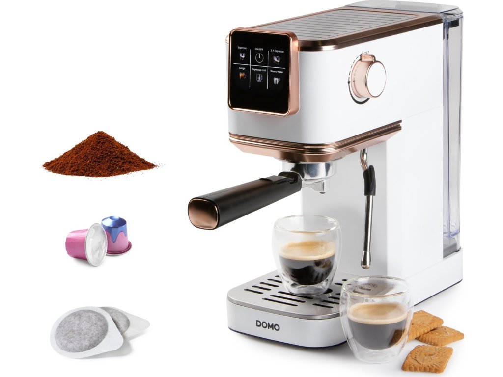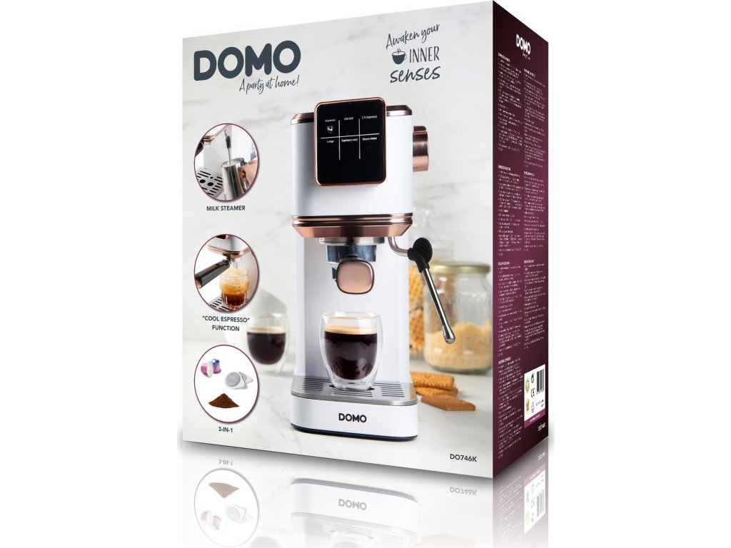 Espresso kávovar 3v1 - pákový, na pody i na kapsle - DOMO DO746K, 1 350 W, 20 Bar, nádržka na vodu 1,1 litru