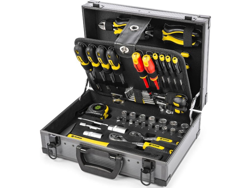 Hodinový manžel, kutil nebo profesionál – když je potřeba něco smontovat, opravit nebo utáhnout, není čas na hrdinství ani kompromisy. Na scénu nastupuje praktická sada nářadí Fieldmann FDG 5021 ve stylovém metalickém kufříku. Ve čtyřech vrstvách naleznete opravdu široký sortiment jakéhokoli nářadí. Ať už se jedná o inbusy, křížové šroubováky, ploché nebo izolované, své místo tam mají i mini šroubováčky. Nechybí ani stavitelný klíč, odlamovací nůž s náhradními noži, několik druhů kleští a vodováha. Samozřejmostí jsou pak nástrčné hlavice, prodlužovací tyč, nástavce na svíčky, ráčny, adaptér na bity, vč magnetického držáku a opravdu velké množství bitů. Celou škálu těchto praktických věcí uzavírá metr o délce 3 m a 300g kladivo. Vše přehledně a bezpečně uloženo, každý kousek má své místo a nebude vás při cestě za prací rušit nepříjemné ťukání nebo bouchání uvolněného nářadí. Fieldmann, značka kvality za dostupnou cenu.