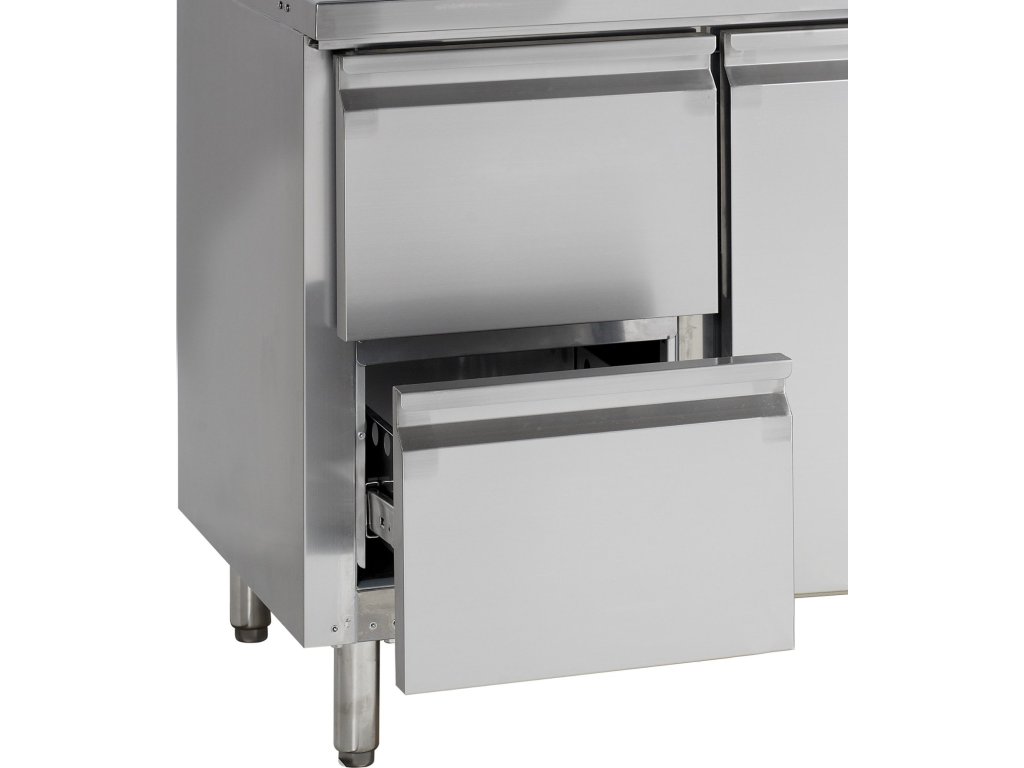 The value-for-money G-line counter cooler is designed with GN1/1 dimensioned cupboards and is a perfect fit for gastronorm pans. It is made in stainless steel and is a great option for professional kitchens. It comes with adjustable shelves and legs for optimal flexibility.prověřená kvalita za příznivou cenu|nerezová ocel|automatické odmrazování|samozavírací dveře|odstranitelná pracovní deska se zadním lemem|nastavitelné nohy|ventilované chlazení