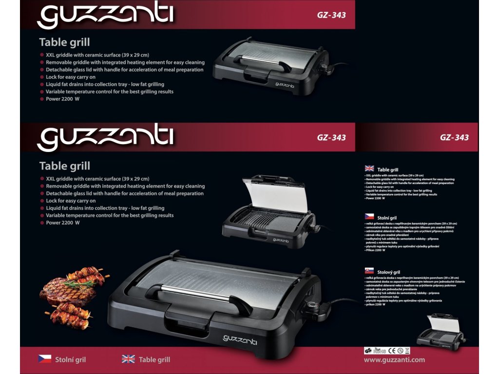 Stolní gril Guzzanti GZ 343velká grilovací deska s nepřilnavým keramickým povrchem (39 x 29 cm)