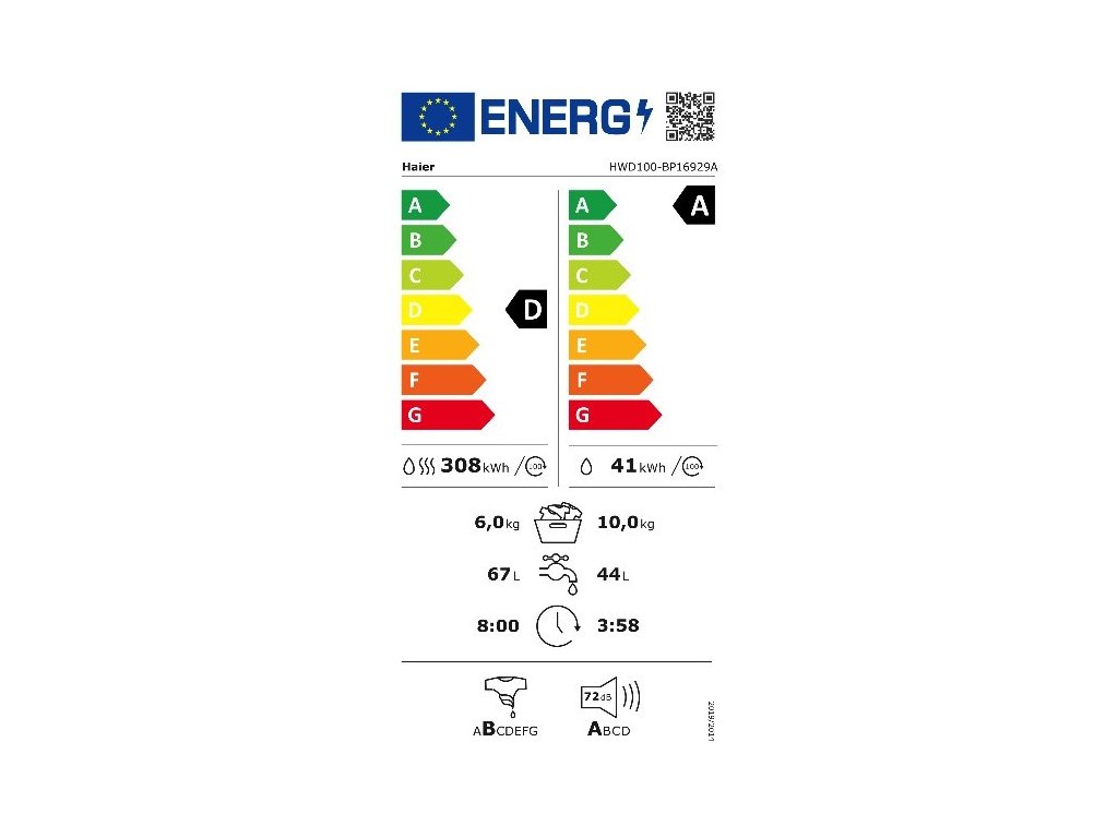 Třída energetické účinnosti sušení / praní D/A