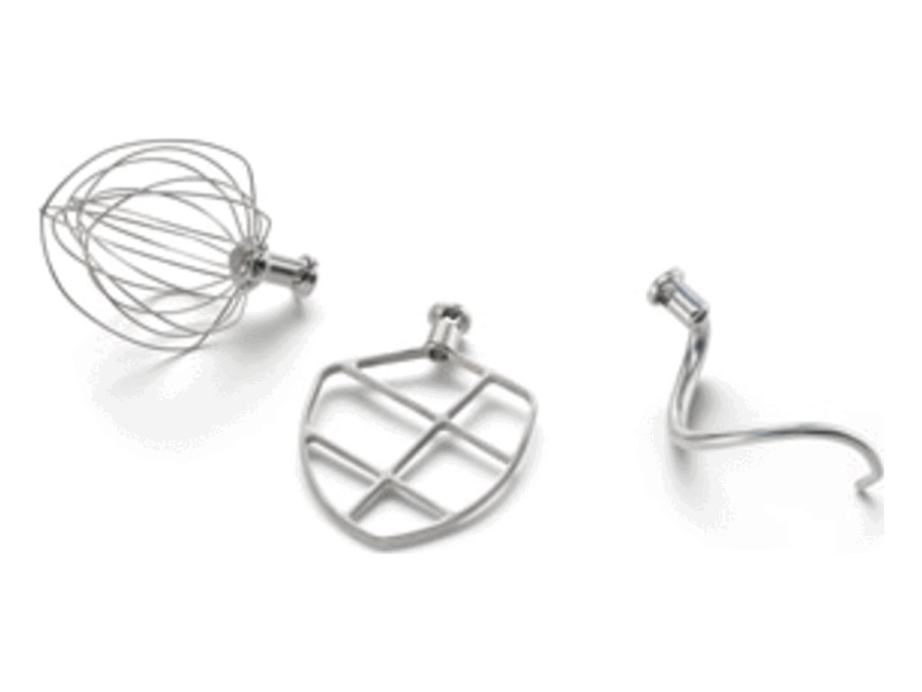- 3 nerezové nástavce: šlehací metla, hák, plochá metla