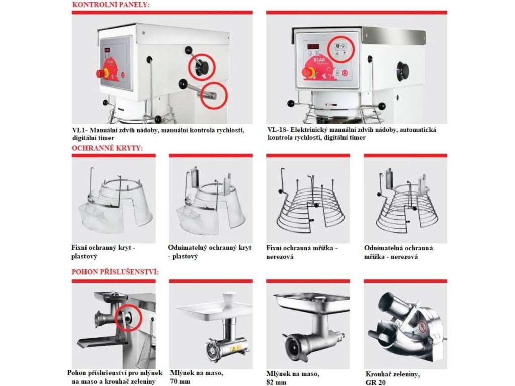 - hnětač lze vybavit pohonem příslušenství, který umožňuje nasazení krouhače zeleniny nebo mlýnku na maso - nutno specifikovat již při objednání hnětače