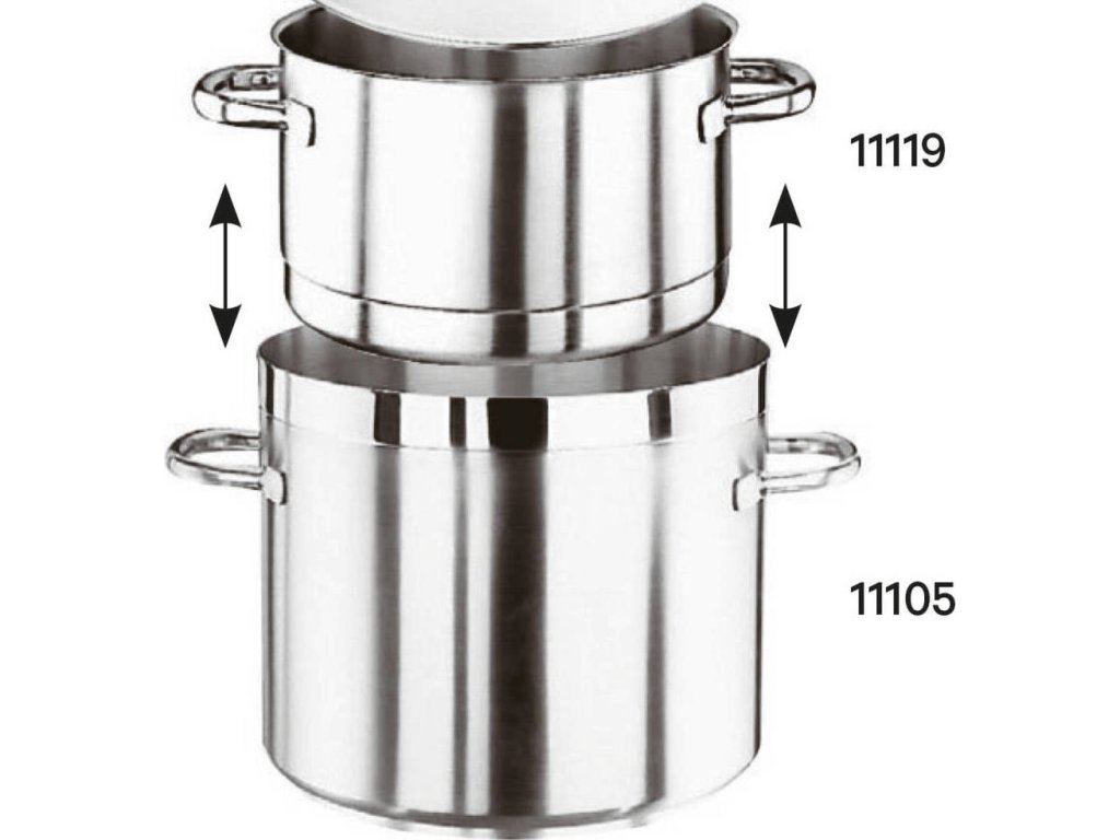 nerezový zásuvný hrnec s děrovaným dnem pro napařování provedení z chromniklové nerezavějící oceli AISI 18/10 s vnitřním i vnějším satinovaným povrchem rovná trubková a tepelně nevodivá držadlaDoplňkové parametry