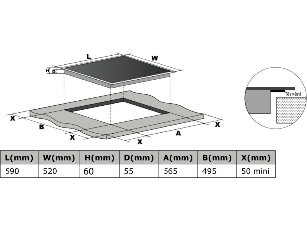 Rozměry pro vestavbu ŠxH– 565 x 495 mm