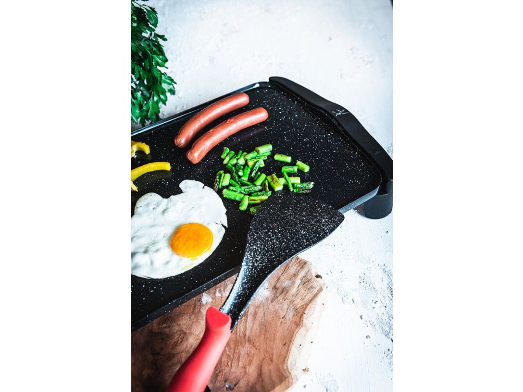 Deska 46 x 28 cm. Teplotně izolovaná držadla pro snadné přenášení. Příkon 2500W.
