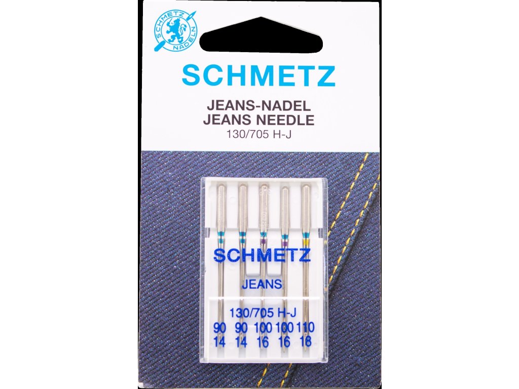 5 jehel Schmetz na džíny s mírně zaoblenými hroty, které snadno pronikají pevnými a silnými látkami, aniž by je poškodily