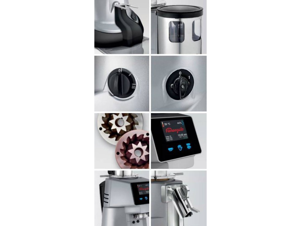 - nová výkonná snadno odnímatelná mlecí hlava – inovace, která umožňuje baristům pracovat s mlýnkem jednoduchým, intuitivním a rychlým způsobem, odstraněním odnímatelné mlecí hlavy bez úpravy nastavení bodu mletí