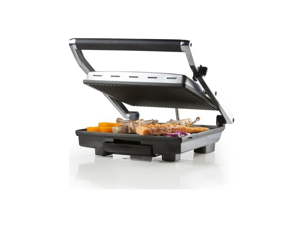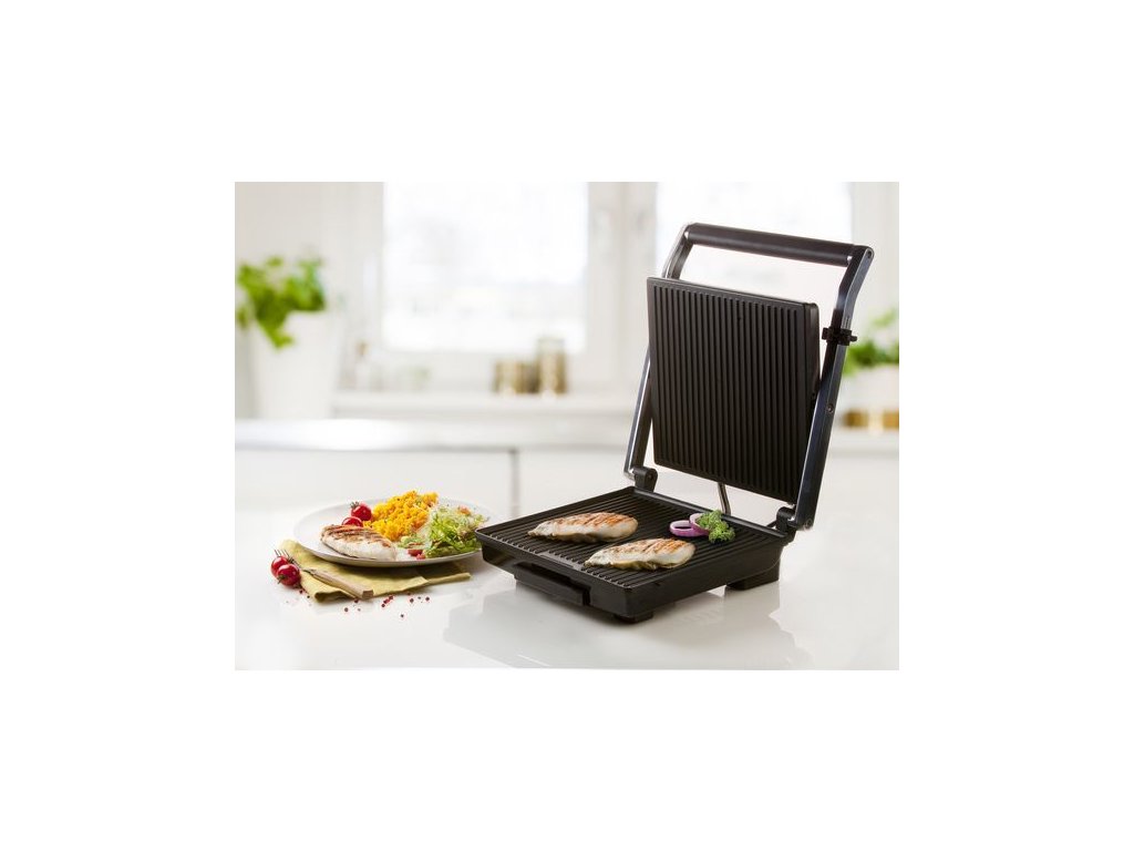 Grilujte v pohodlí domova kdykoliv budete chtít. Elektrický kontaktní gril můžete využít mnoha způsoby: v kontaktním grilu snadno zapečete panini bagety, tousty a sendviče a také výborně a rychle ogrilujete maso z obou stran a to i rovnou se zeleninou kolem. Nepřilnavý povrch grilu ocení zejména milovníci zdravé výživy, ale i všichni ostatní při čištění grilu po skočení grilování. Přebytečný tuk, který se vypeče z masa, odtéká kanálky přímo do vyjímatelný nádobky ve spodní přední části grilu.