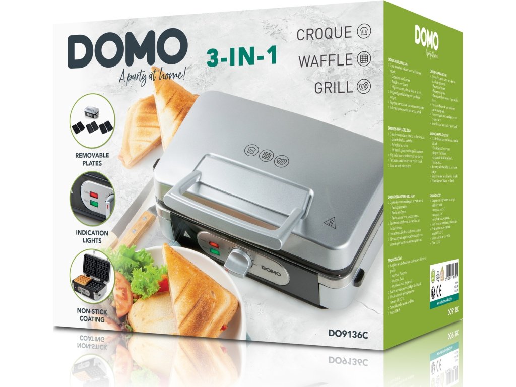 Kontaktní elektrický gril panini - DOMO DO9135G, Příkon: 2000 W