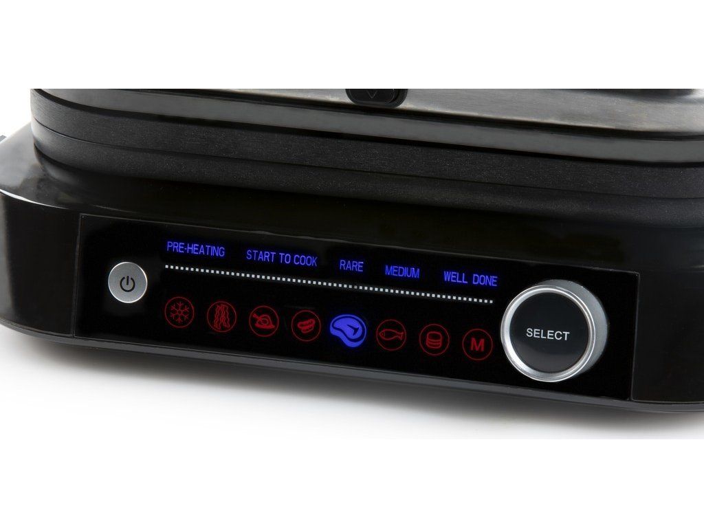 Chytrý kontaktní gril ohlídá výsledek grilování za vás. Zvolíte druh masa (slanina, kuřecí, šunka/klobása, steak, ryba, burger) a stupeň propečení (rare, medium, well-done) a o zbytek se gril postará již sám.