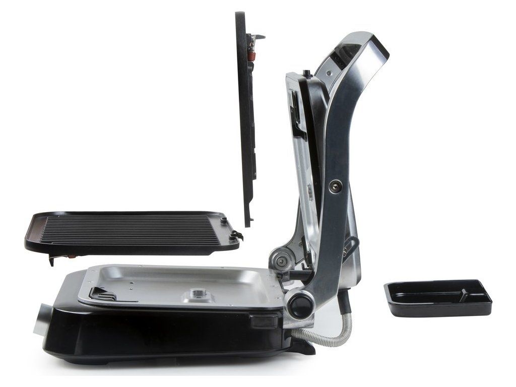 Při běžném grilování jistě oceníte možnost úplného rozložení grilu a grilování na obou deskách najednou. Přebytečný tuk po žebrovaných deskách stéká do vyjímatelné nádobky. Pečící desky můžete po grilování snadno vyjmout a umýt v myčce na nádobí.