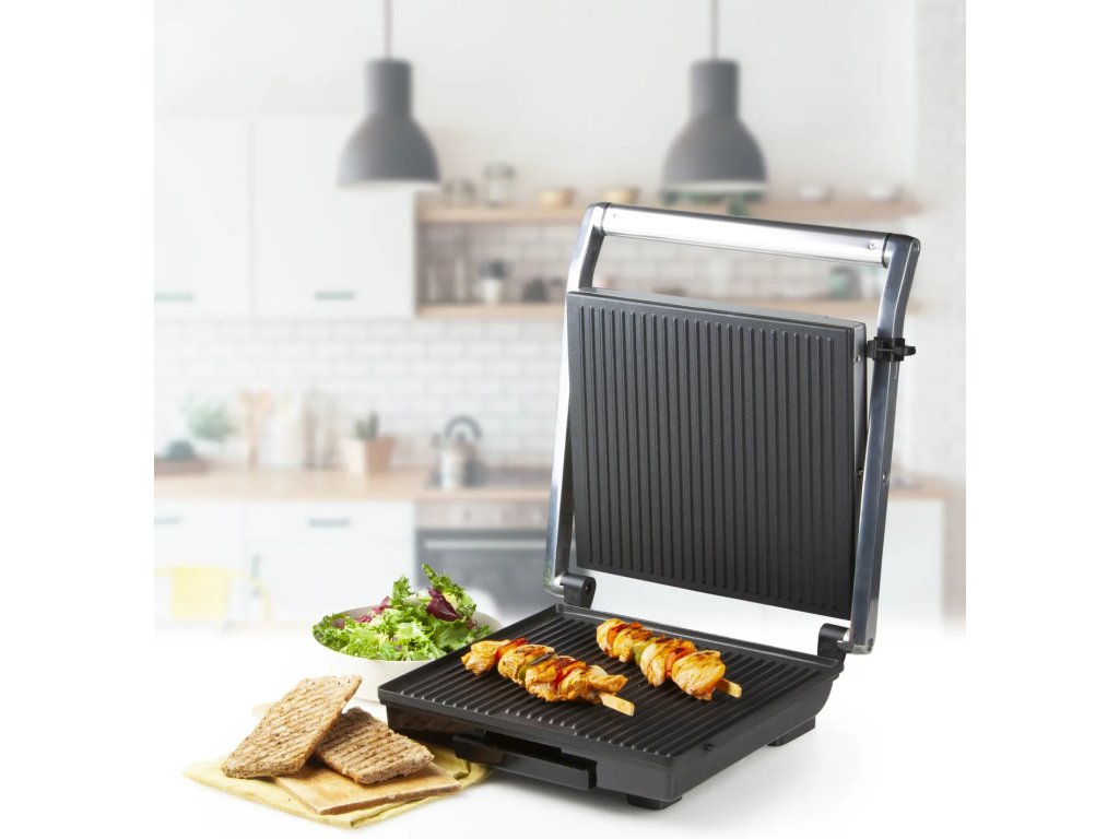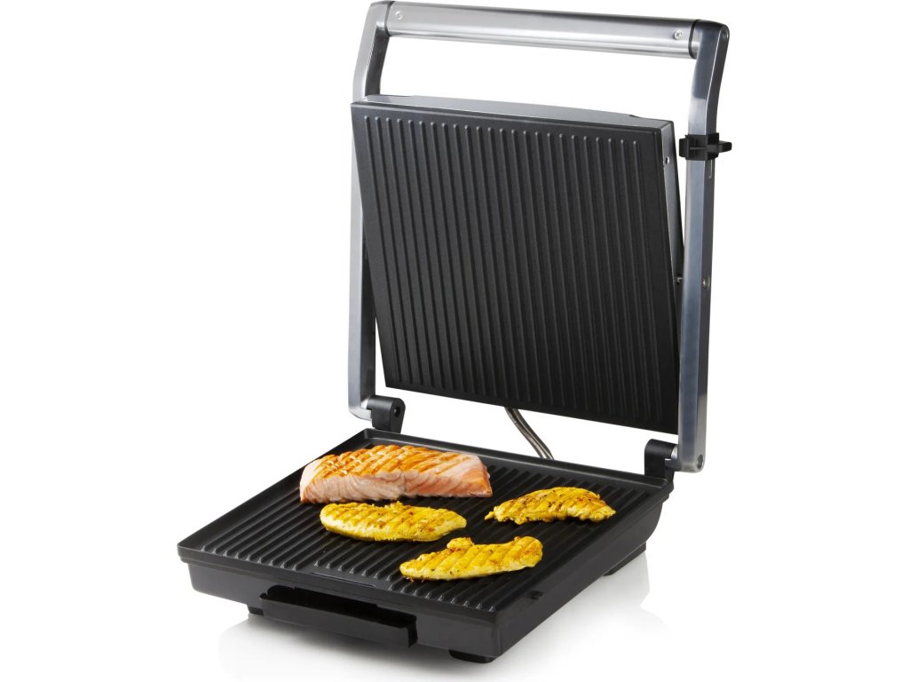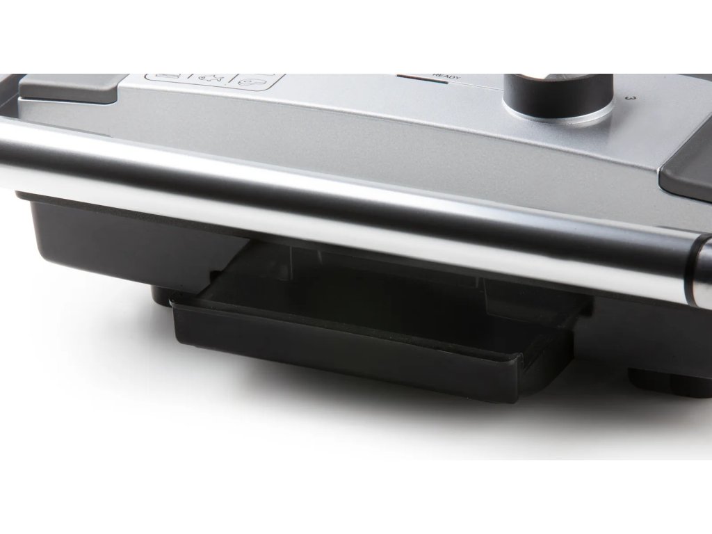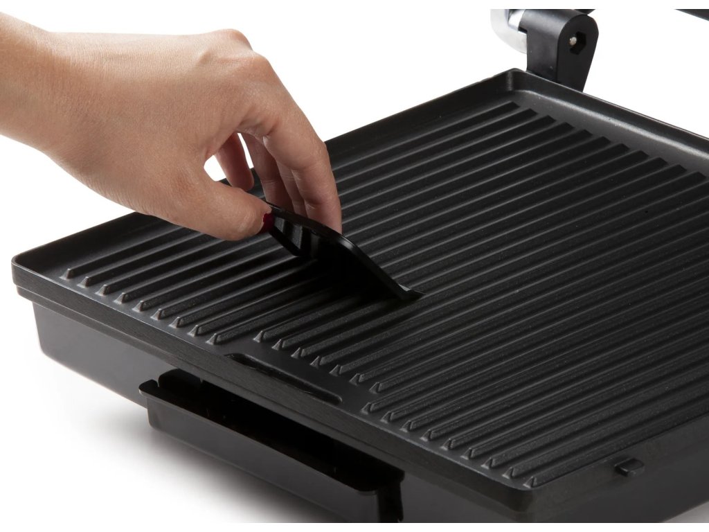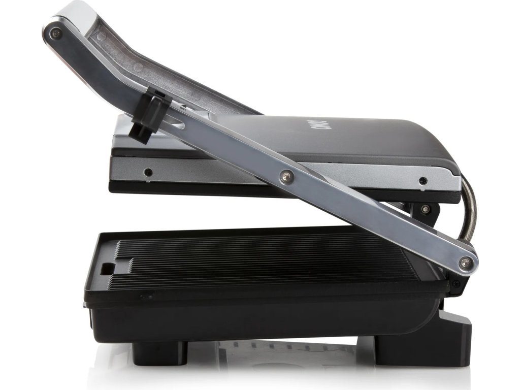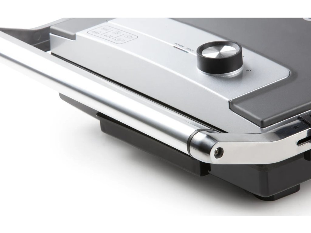 Univerzální kontaktní gril na každodenní použití pro snadnou a rychlou přípravu perfektních steaků, masa do hamburgerů i ryb a zeleniny. V grilu také snadno zapečete díky plovoucímu víku i vysoké panini bagety, nebo sendviče. Tuk a šťávy vypečené z masa odtékají otvorem ve spodní grilovací desce rovnou do vyjímatelné nádobky. Díky inovovanému plně tepelně odizolované víku a tepelně izolované rukojeti víka se stává práce s grilem velmi bezpečnou. Grilování vám také zpříjemní možnost upravit se teplotu grilovacích desek pomocí plynule nastavitelného termostatu.