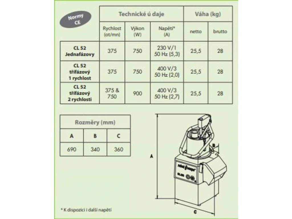 - určen pro střední gastronomické provozy s požadavkem na kvalitní a výkonné zpracování zeleniny