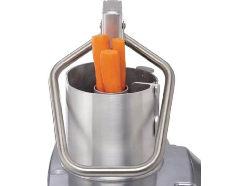 - 1× kruhový plnící otvor o ploše 227 cm2, objem násypky 4,4 l - vhodný pro plátkování, strouhání nebo kostičkování velkobjemových surovin jako je zelí, celer, salát