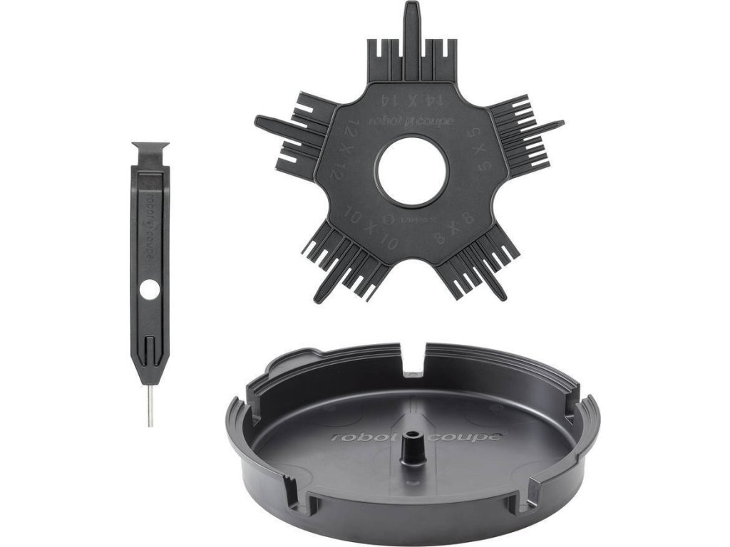 - 1× integrovaný tubus o průměru 59 mm – tubus se používá pro nepřerušované krájení dlouhých nebo křehkých druhů zeleniny nebo ovoce (okurky, cuketa, ředkev, banán aj.)