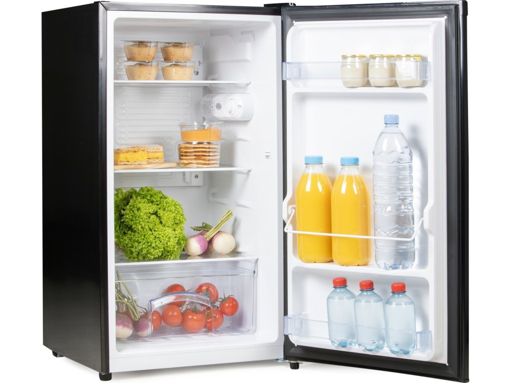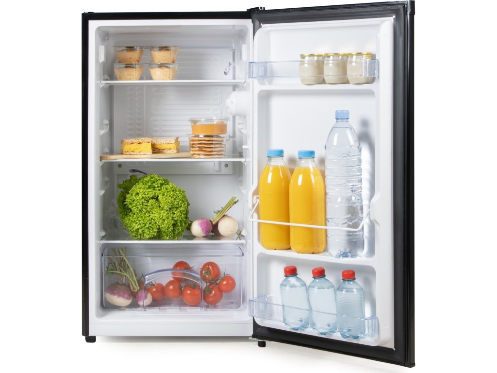 Praktická lednice kompaktní z venku a velká uvnitř. Vnitřní prostor je rozčleněný dvěma velkými policemi, které si můžete umístit do různých výšek dle potřeby. Lednice snadno pojme velké množství čerstvých potravin. Čerstvou zeleninu umístíte do zásuvky ve spodní části, láhve můžete umístit do držáků ve dveřích, stejně tak jako další drobné sklenice, vejce apod. Se svou výškou 85 cm a šířkou necelých 48 cm se lednice vejde prakticky kamkoliv a bude vhodnou výbavou i do studentských pokojů, nebo pokojů pro hosty. Navíc díky nízké hlučnosti o ní ani nebudete vědět.