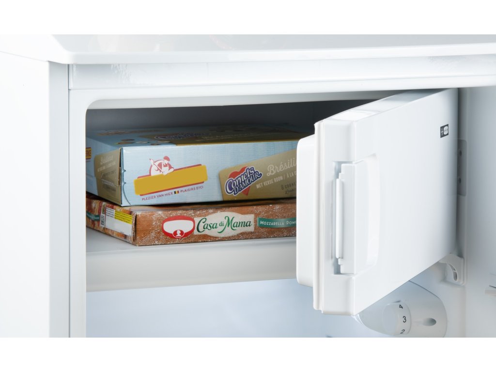 Teplotu můžete nastavit pomocí mechanického otočného knoflíku. Díky bílé barvě se tato chladnička hodí do každého interiéru. Chladnička má otočné dveře, takže můžete snadno změnit směr otevírání.