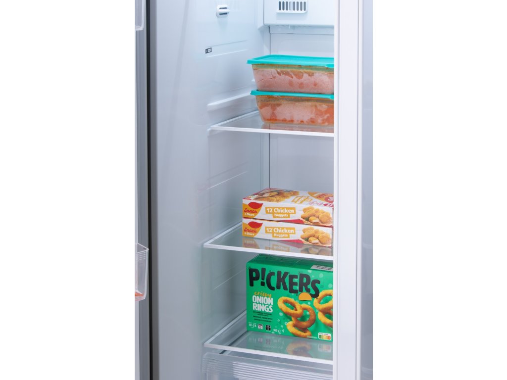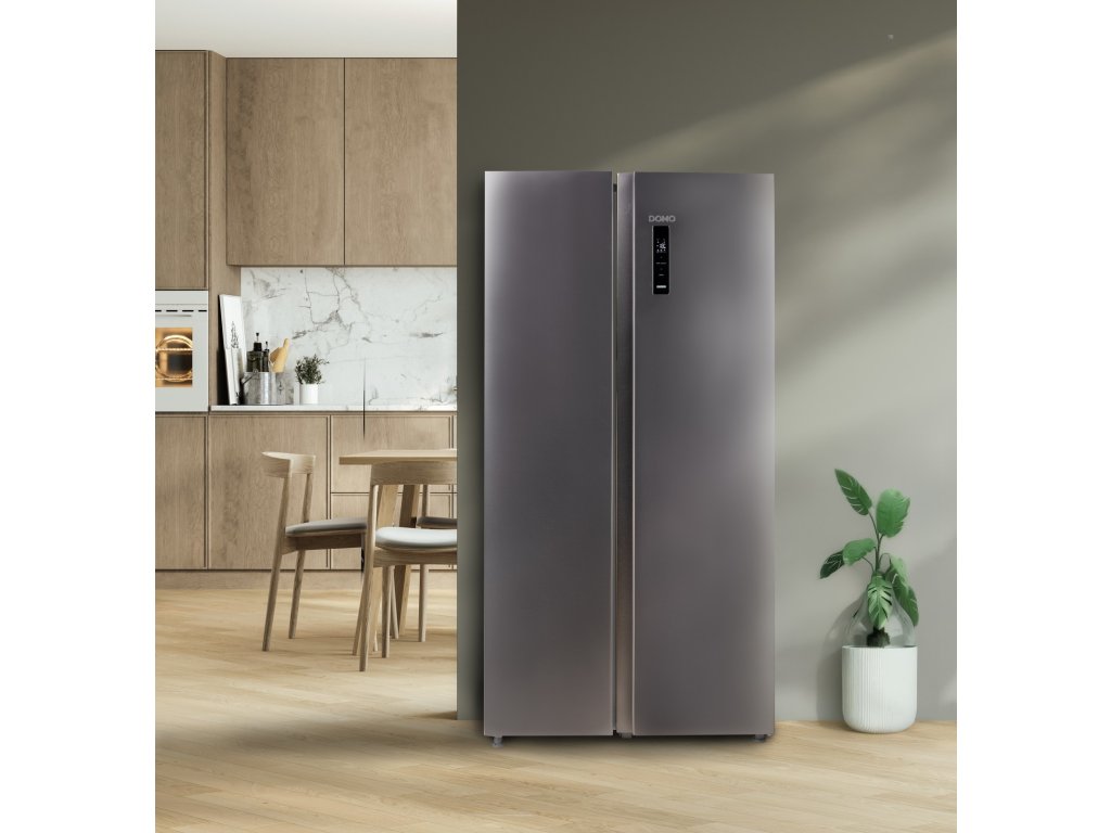 Chladnička s mrazničkou DOMO DO99506M nabízí velkorysý úložný prostor o objemu 555 litrů (349 l chladicí část, 206 l mrazicí část).