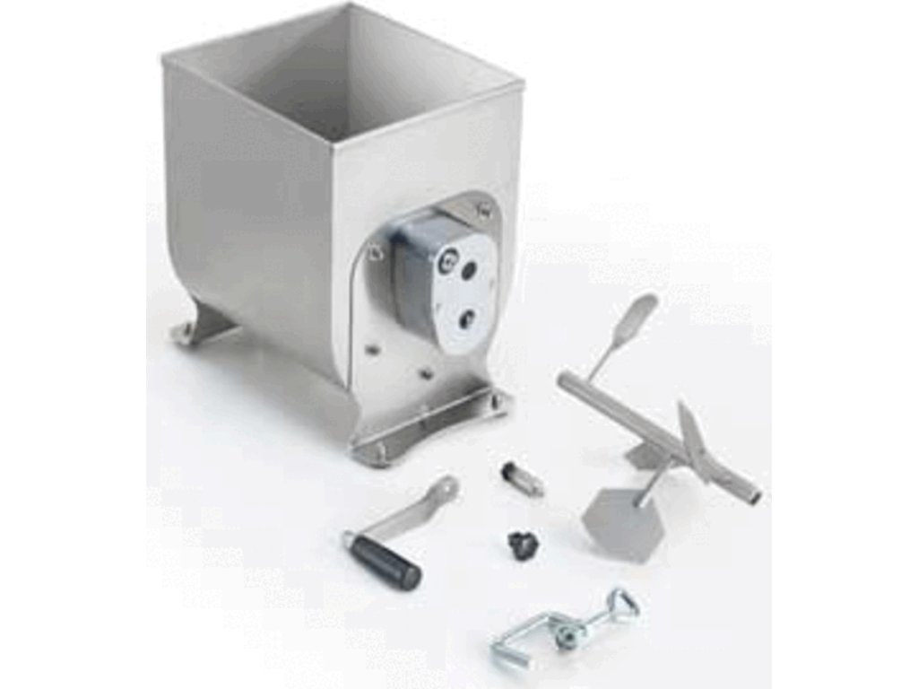 - manuální míchačka masa s jednou lopatkou ovládaná pomocí kliky