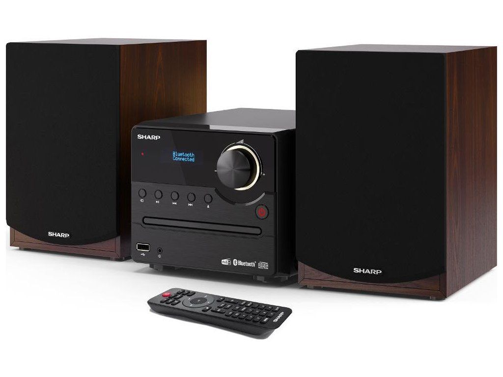 Mikrosystém, výkon 45 W, hudba přes Bluetooth, USB, CD mechanika, USB, FM tuner, ekvalizér s 6 předvolbami, dřevěné reproboxy, LCD displej s bílým podsvětlením, CD/CR-R/CD-RW/MP3
