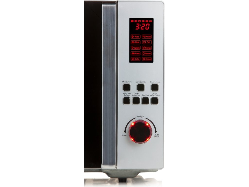 Objemná mikrovlnná trouba s velkým otočeným talířem a vnitřním prostorem z leštěného nerezu. Díky hladkému vnitřnímu povrchu a odkrytému topnému tělesu lze troubu i topné těleso snadno udržovat v čistotě a zachovat tak perfektně funkční gril i horkovzduch bez připalování nečistot. Jednoduchým digitálním ovládáním lze nastavit čas, výkon mikrovln i teplotu horkovzdušného ohřevu, nebo zvolit jeden z přednastavených programů, či různě podle potřeby kombinovat všechny možnosti ohřevu. Mezi užitečné funkce pak jistě přijde vhod paměť až na 5 minut umožňující pokračovat v programu přerušeném otevřením dvířek, nebo možnost nastavit do řady za sebou dvě různé funkce včetně času, výkonu apod. Všem, kteří mají zvídavé děti pak jistě přijde vhod i dětský zámek blokující všechny tlačítka proti nechtěnému stisknutí.