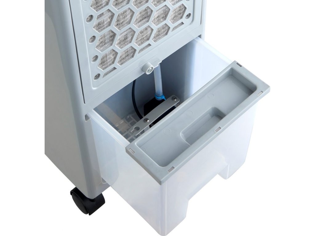 Zvlhčovač a čistička vzduchu v jednom, funkce 3-v-1: ochlazovaní, čistička vzduchu a zvlhčovač, kapacita vodní nádrže 5 l, 3 rychlosti proudění vzduchu (silný, střední, nízký), dálkové ovládání.