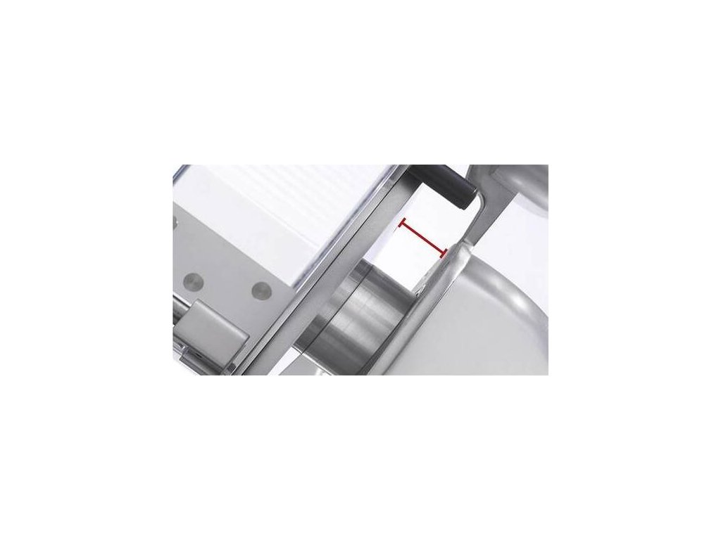 - zpřesňuje seřizování tloušťky plátku – zvláště vhodné při krájení na tenké plátky, mikrometrická regulace tloušťky plátku