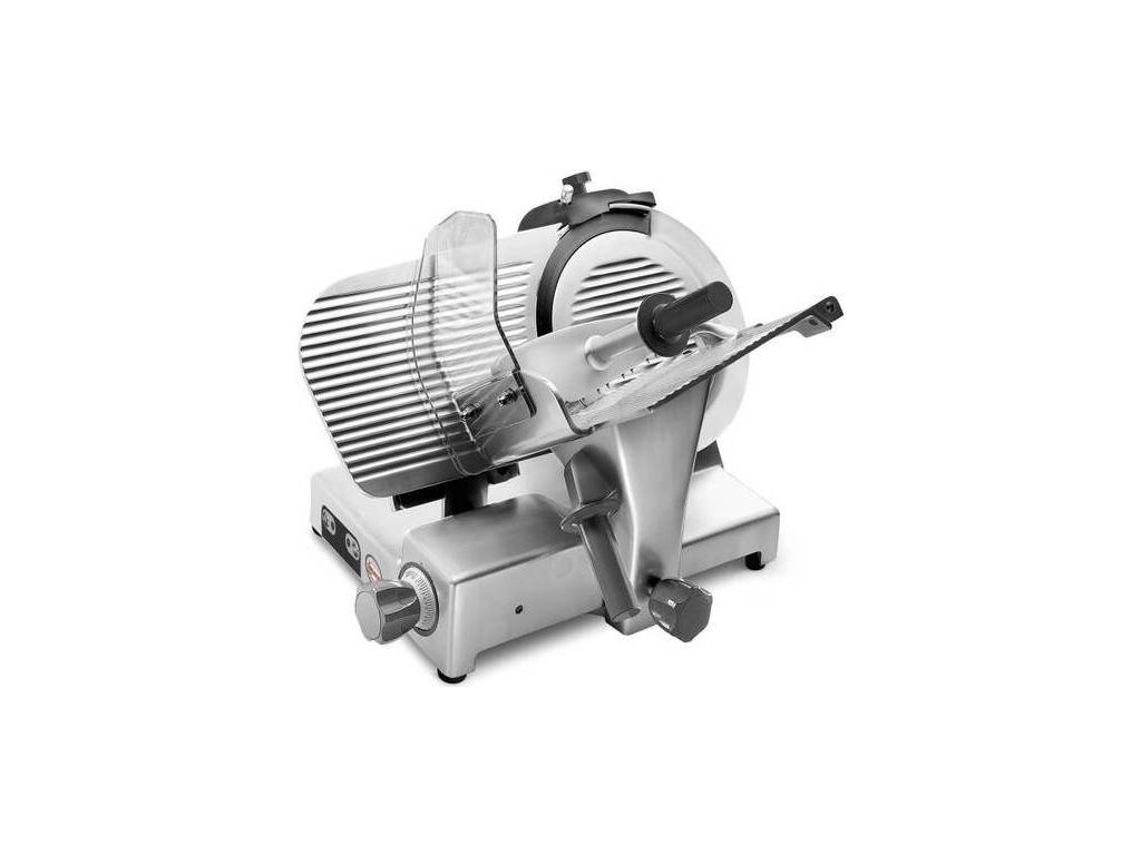 Nářezový stroj PALLADIO 350 INGR s teflonovým nožem o průměru 350 mm s uložením posuvného stolu našikmo, od italského výrobce SIRMAN.