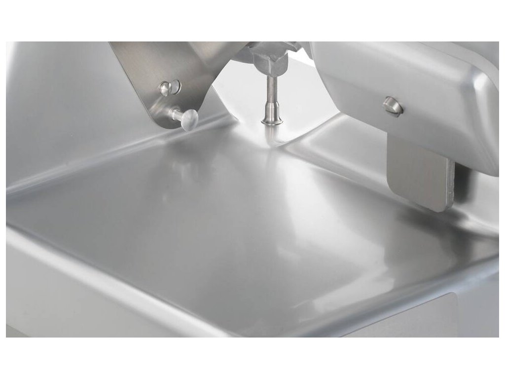 Nářezový stroj PALLADIO 330 INGR TOP s nožem o průměru 330 mm s uložením posuvného stolu našikmo, od italského výrobce SIRMAN.