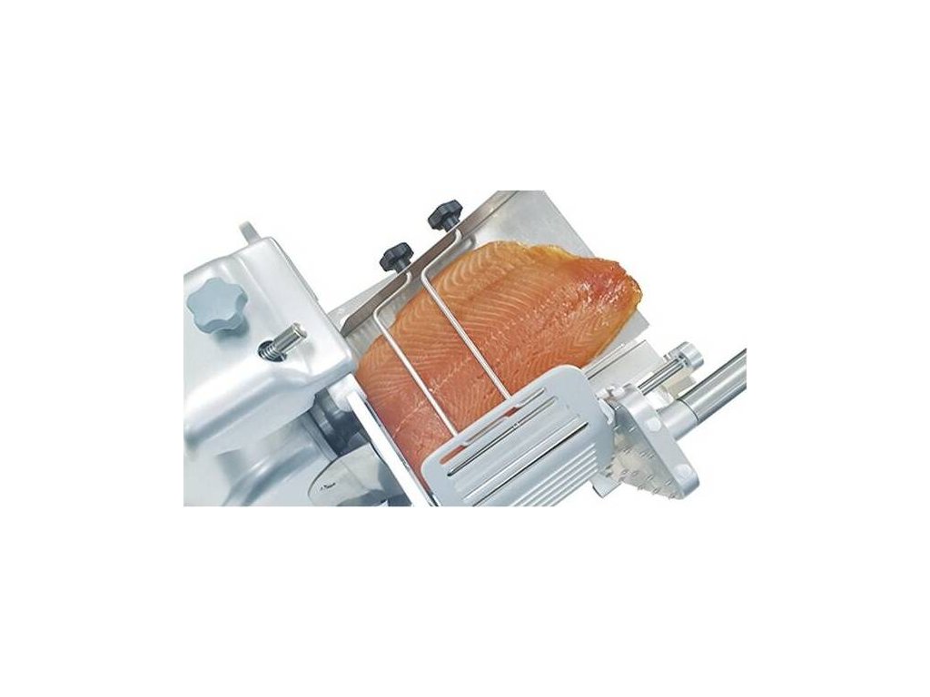 Nářezový stroj PALLADIO AUTOMATICA 300 TOP s nerezovým nožem o průměru 300 mm s uložením posuvného stolu našikmo, od italského výrobce SIRMAN.