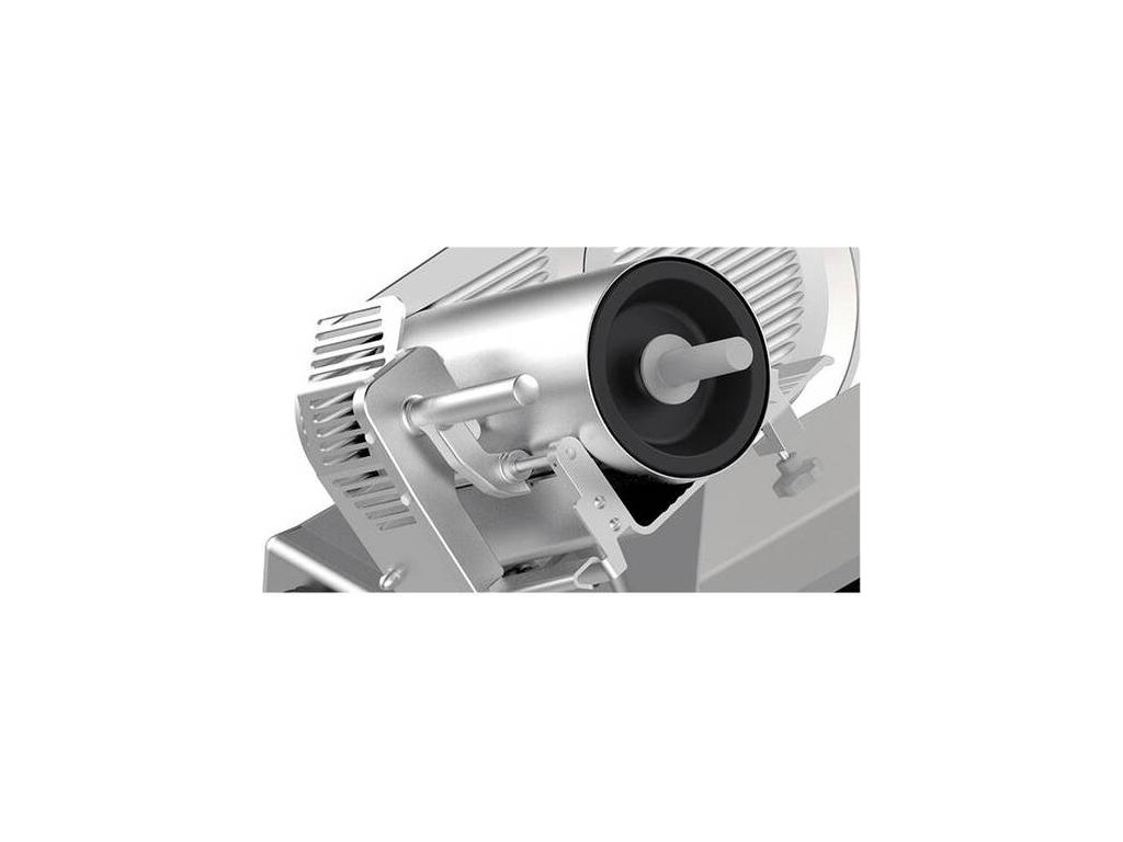 - model je vybaven automatickým pojezdem, který umožňuje automatické krájení upevněné suroviny bez nutnosti manuálního posuvu pojezdového stolu obsluhou, nářezový stroj tak automaticky krájí bez nutnosti zásahu obsluhy v průběhu krájení