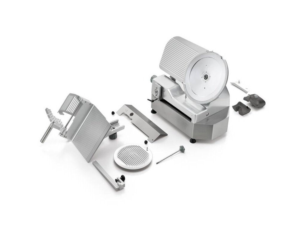 - model je vybaven automatickým pojezdem, který umožňuje automatické krájení upevněné suroviny bez nutnosti manuálního posuvu pojezdového stolu obsluhou, nářezový stroj tak automaticky krájí bez nutnosti zásahu obsluhy v průběhu krájení