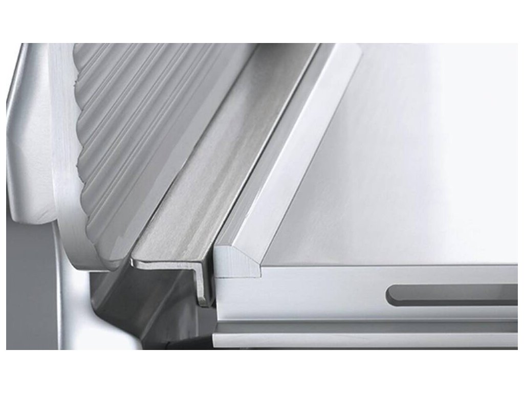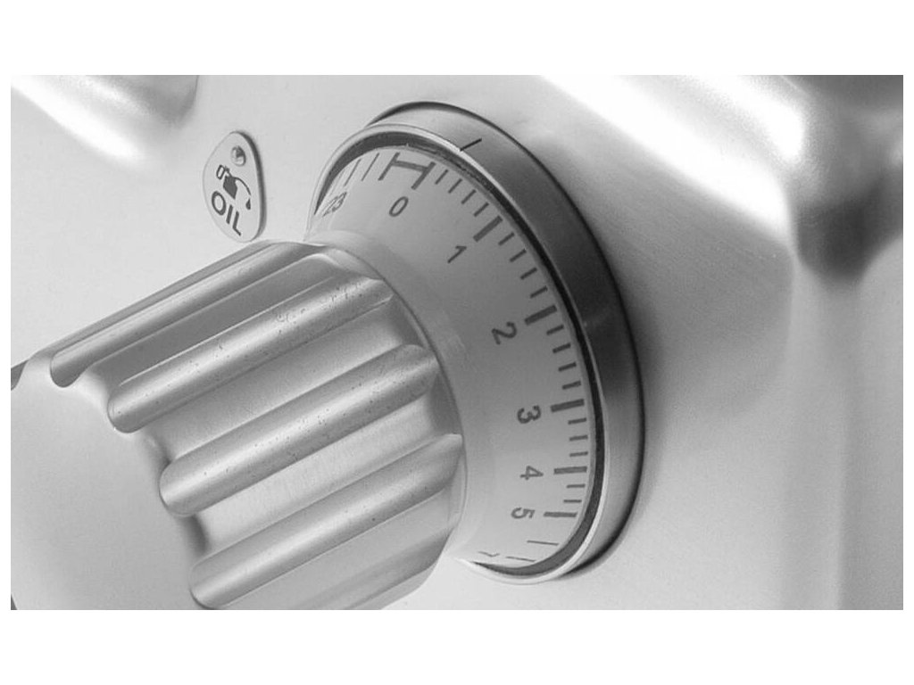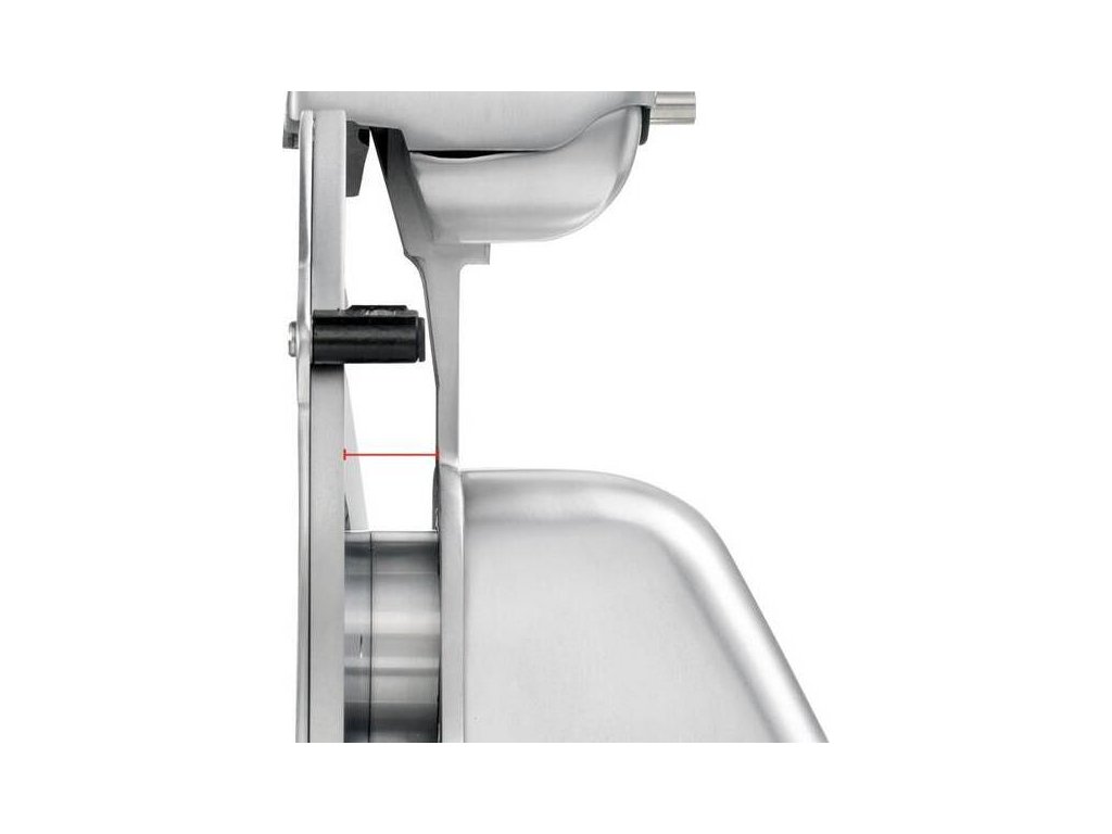 - zpřesňuje seřizování tloušťky plátku – zvláště vhodné při krájení na tenké plátky, mikrometrická regulace tloušťky plátku