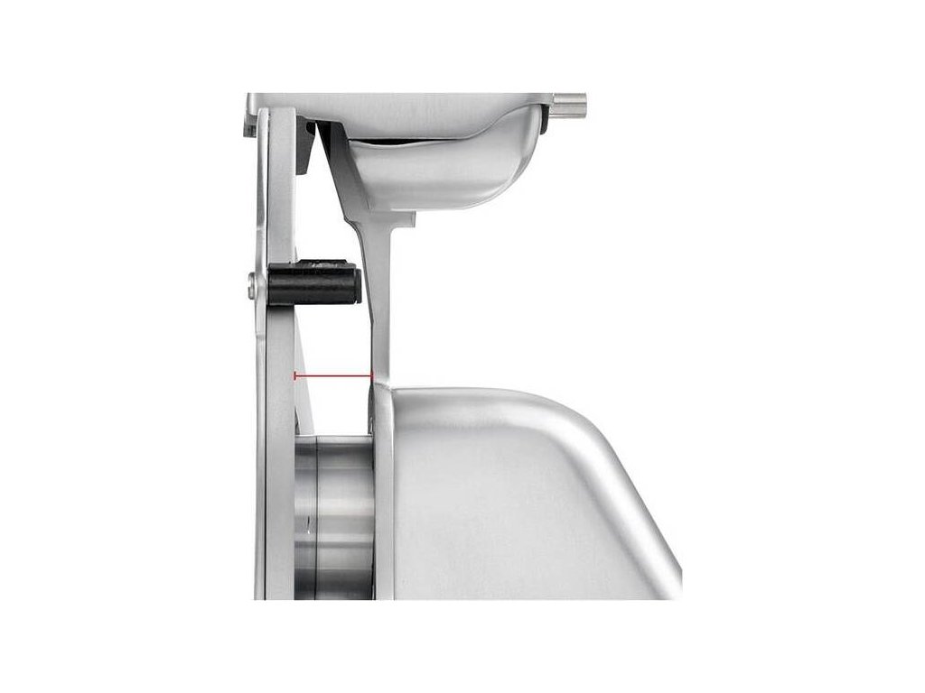 - zpřesňuje seřizování tloušťky plátku – zvláště vhodné při krájení na tenké plátky, mikrometrická regulace tloušťky plátku