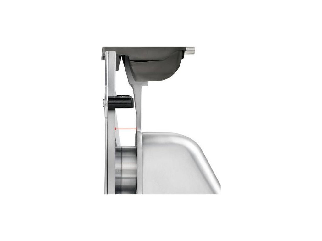 - zpřesňuje seřizování tloušťky plátku – zvláště vhodné při krájení na tenké plátky, mikrometrická regulace tloušťky plátku