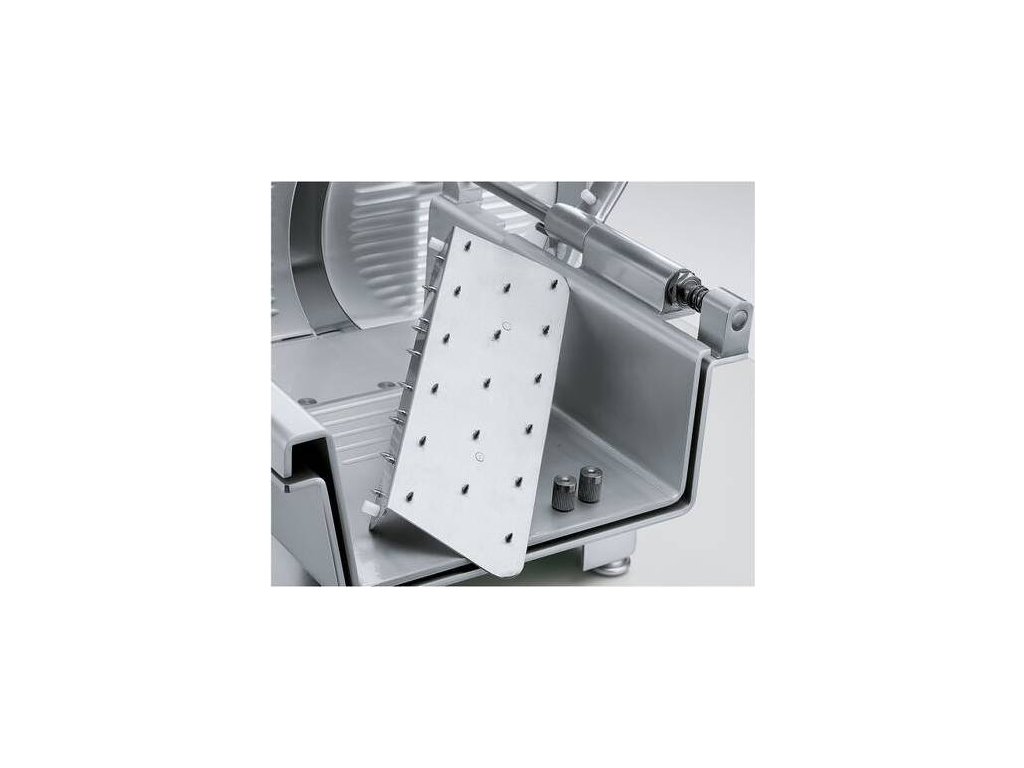 - zpřesňuje seřizování tloušťky plátku – zvláště vhodné při krájení na tenké plátky, mikrometrická regulace tloušťky plátku