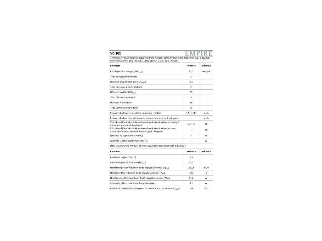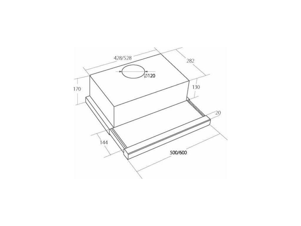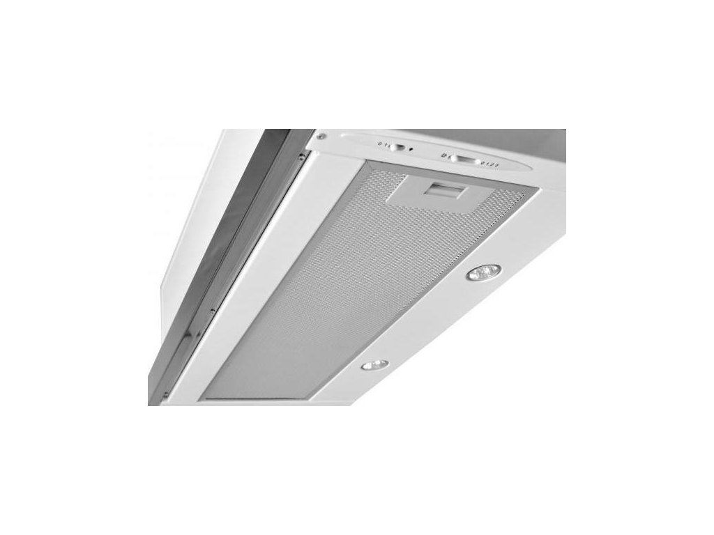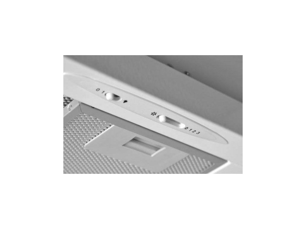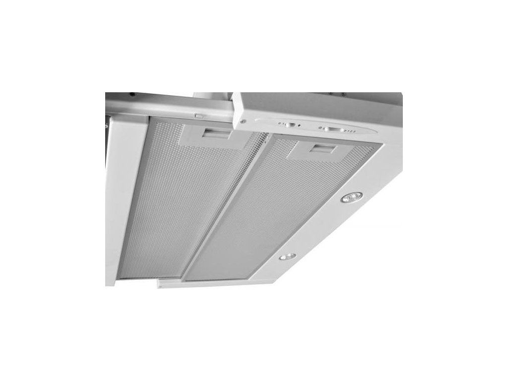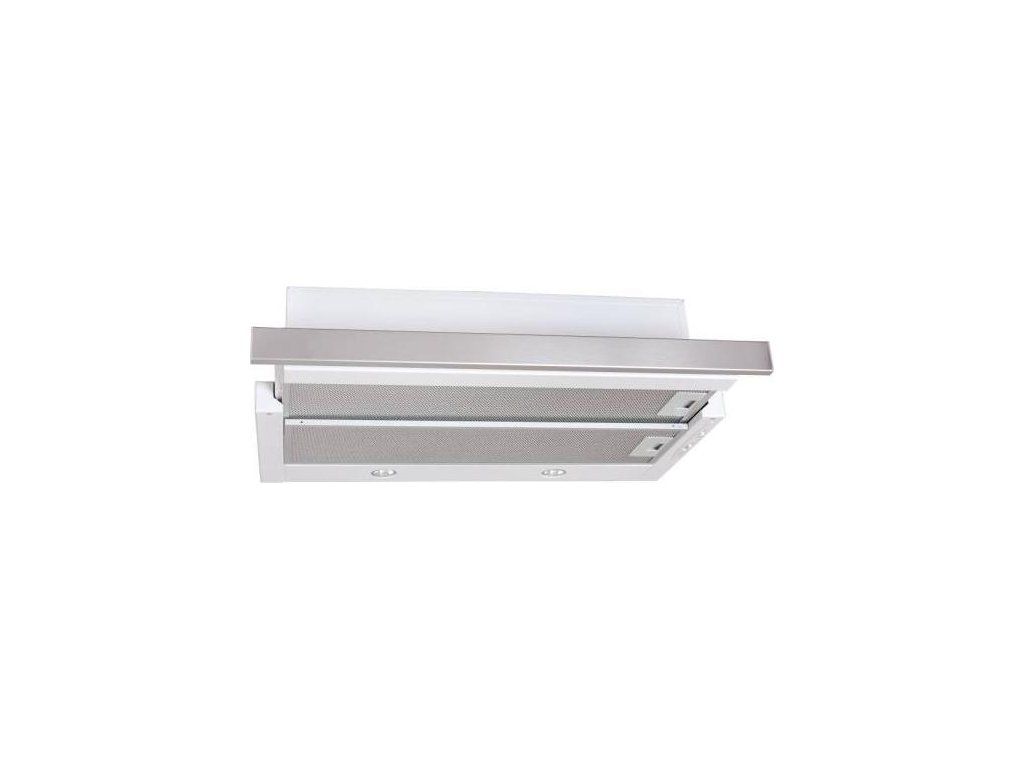 Vestavná digestoř výsuvná, šíře 60 cm, bílá s nerez lištou, max. výkon 338 m³/h (15 Pa), hlučnost Lw 56 – 71 dB(A), 3 rychlosti, odsávací jednotky mají individuálně vyvažovanou turbínu, motory jsou opatřené vratnými tepelnými pojistkami (při přetížení motoru vypne, po jeho vychladnutí opět sepne), mechanické posuvné ovládání, kovové sendvičové tukové filtry, které lze mýt v myčce, možnost práce v odtahovém i recirkulačním režimu, Výbava: úsporné LED osvětlení 2 × 2 W, zdarma zpětná klapka Recirkulační režim u vestavných digestoří: Digestoř se osadí uhlíkovým pachovým filtrem. Přefiltrovaný vzduch se z digestoře odvádí obdobně jako u odtahového režimu trubkou, která prochází celou skříňkou. Tato trubka však neústí kolenem do zdi, ale nad skříňku, kde ji doporučujeme zakončit mřížkou.Pro výrobu skříňky je směrodatný rozměrový nákres a údaje v něm uvedené. Fotografie digestoří jsou ilustrační.Doplňkové parametry