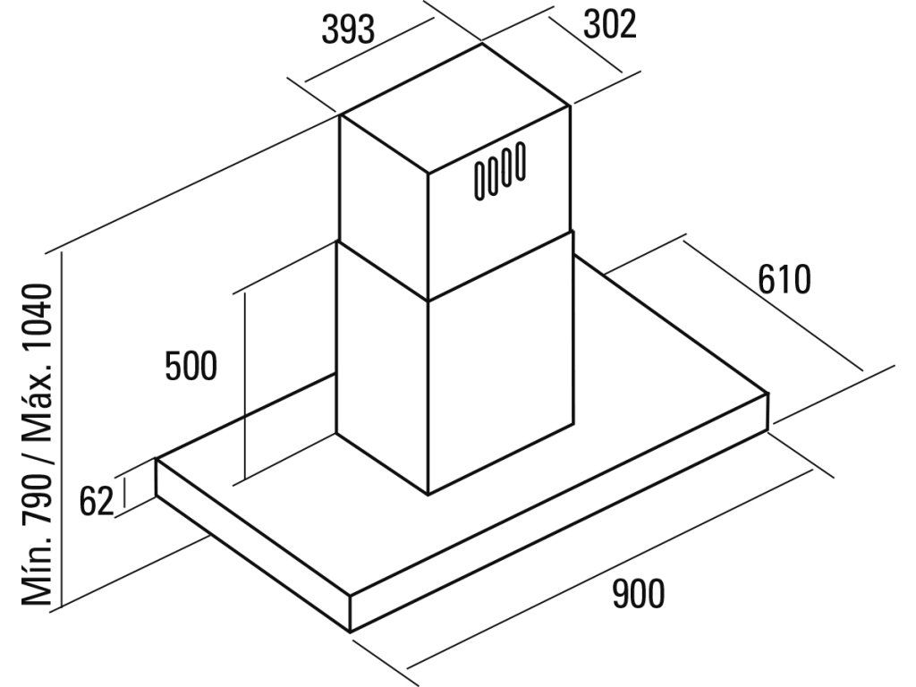 Bezkartáčový (brushless) motor CATA BTDCA je konstruovaný tak, aby eliminoval v maximální míře vnitřní tření (tím, že neobsahuje uhlíkové kartáče) a tak dosahoval maximálních výkonů při nízké hlučnosti a nízké spotřebě elektrické energie. Zároveň tím, že nepoužívá uhlíkové kartáče a ty tak není potřeba pravidelně měnit, zvyšuje se životnost motoru a tím i celé digestoře. Ostrůvková, 900 mm, nerez/černé zrcadlové sklo, dotykové (senzorové) ovládání TC Slider, 1 motor BTDCA 130 W, 4+1 rychlostí, 710 m3/h (5 Pa), max. hlučnost Lw 64 dB(A), max. tlak 455 Pa, 15 min. časovač, LED osvětlení s nastavitelnou intenzitou jasu